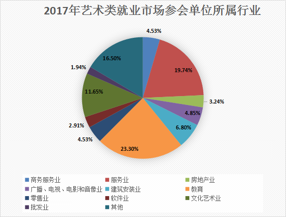 本次招聘会有来自全国各地的316家用人单位参会,其中初等教育单位9家,高等教育单位2家,国有企业11家,科研设计单位4家,民办非企业60家,三资企业16家,综合类单位40家,其它企业174家。涉及十几个行业,教育行业比重最大占23.42%,服务业次之占19.30%,文化艺术业占12.34%,建筑安装业占6.65%,广播、电视、电影和音像业占4.53%,商务服务业占4.43%,零售业占4.43%,房地产业3.24%,软件业占2.91%,批发业占1.94%,其它行业占16.50%。本次招聘会参会单位大部分为山东省内企业,占85.44%,省外共45家单位占14.56%。本次招聘会提供7888个工作岗位,来自山艺及周边院校的艺术类学生及部分学生家长5000余人参加。
