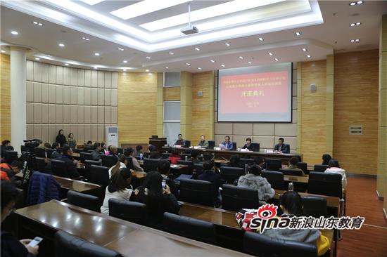 11月16日上午,山东艺术学院承办的文化部、教育部中国非物质文化遗产传承人群研修研习培训计划·山东省地方戏曲小剧种传承人表演培训班开班典礼在长清校区举行。山东省文化厅非物质文化遗产处处长姜慧,山东艺术学院纪委书记兰绍彤出席,山东省地方戏曲小剧种传承人表演培训班全体学员,学校艺术实践与创作处处长、戏曲学院负责人及戏曲学院师生代表参加了开班仪式,仪式由戏曲学院院长王文清主持。