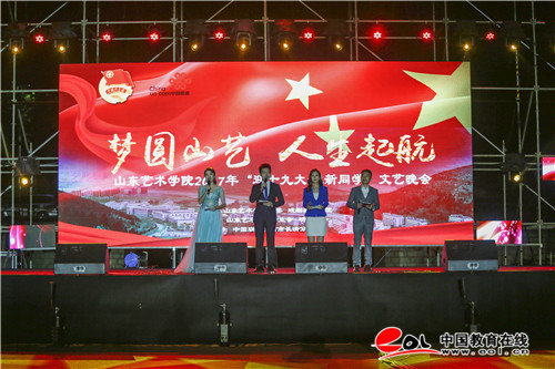 中国教育在线讯 9月28日晚,山东艺术学院“梦圆山艺人生起航”2017年“迎十九大 迎新同学”文艺晚会在长清校区体育场举行,现场气氛火爆,5000余名山艺学子共同为喜迎十九大,欢迎新同学疯狂打CALL。