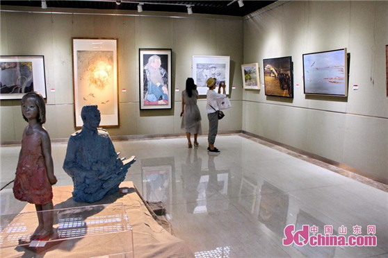 1/7 6月13日上午,山东艺术学院2017首届毕业展演季“闳美山艺”系列活动教师作品展在山东省文化馆开展。本次展览作品共计155件(套),涵盖了美术类、设计类、传媒类、造型类等该校师生创作的艺术精品。(来源:中国山东网 作者:周玉森 王立燕)