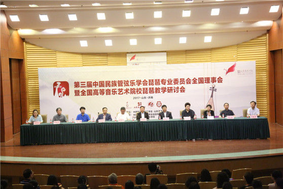 5月25日上午,为推动琵琶事业的普及与发展,秉承“弘扬民族文化、振奋民族精神”的理念,提高全国高等艺术院校琵琶教学水平,由中国民族管弦乐学会、山东艺术学院主办,中国民族管弦乐学会琵琶专业委员会、山东艺术学院音乐学院承办的、山东艺术学院首届毕业展演季系列活动之一第三届中国民族管弦乐学会琵琶专业委员会全国理事会暨全国高等音乐艺术院校琵琶教学研讨会在山东艺术学院文东校区综合楼一楼音乐厅开幕。
