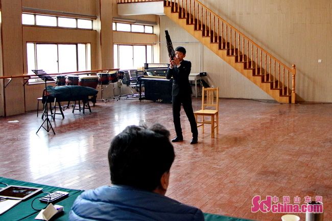 山东艺术学院艺考音乐表演(中国器乐演奏)复试现场,考生在进行笙演奏。