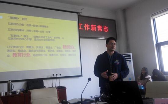 新浪山东运营部副总编张永康以“互联网'+时代' ”为主题,对互联网的宏观形势进行了剖析,对互联网“+时代”的概念、价值、精神、涉及行业做出归纳,并通过赫芬顿邮报等案例诠释何为“去中心化趋势”,对高校宣传的“新常态”提出了运营六大秘诀。