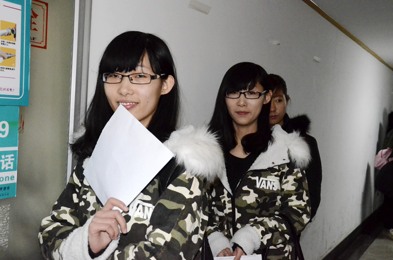 进入考场,三人都有些紧张,而考场老师大呼姐妹俩长得太像分不清。