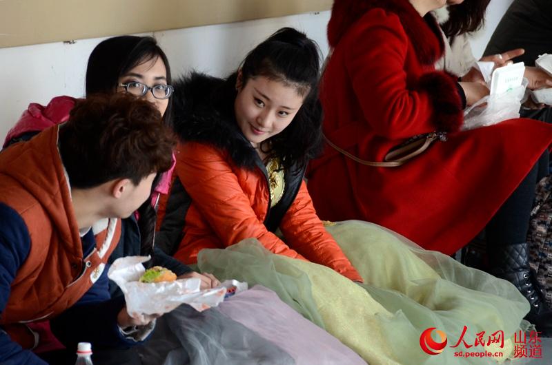 3月2日,山东艺术学院艺考现场,已经准备妥当的考生,“美丽冻人”。