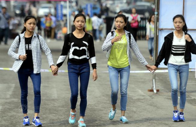 2014年09月12日,山东省济南市,山东艺术学院大一新生报到.2014年艺考中备受关注的菏泽四胞胎“冰清玉洁”同时考入了山艺舞蹈学院。学校为方便四胞胎报到和生活起居,安排专人负责搬运四胞胎的行李,并安排四人同住一间宿舍。