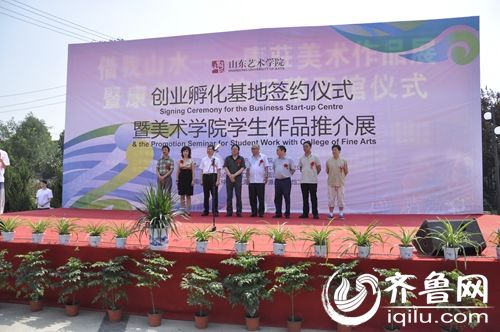 19日上午十点,山东艺术学院创业孵化基地签约仪式暨美术学院学生作品推介会展在仲宫上海街艺术街区举行。山东艺术学院党委副书记王力克,济南富城文化发展有限公司董事长汪赛超、社会各界人士以及山东艺术学院各二级学院院长、党总支书记、副书记、各相关部门负责人参加了本次仪式。
