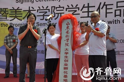 仪式上济南富申市场管理有限公司董事长汪赛超、山东艺术学院学生处负责人、济南市文学艺术界联合会主席张珂、山东艺术院入驻学院代表传媒学院副院长王宏昆、入驻学生代表刘鹏等分别在仪式上发言。最后山东艺术学院党委副书记王力克与济南富申市场管理有限公司董事长汪赛超分别交换签约协议书并和共同为孵化基地揭牌。