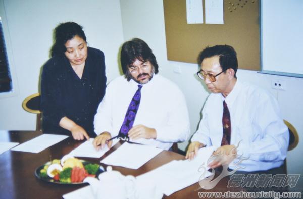 1999年3月,刘玉晨(右一)代表山东艺术学院与澳大利亚格列菲斯大学签订友好校际关系协议。