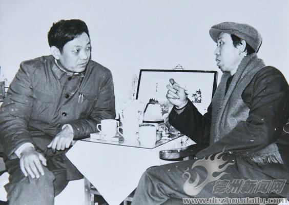 1985年,刘玉晨(右)与著名作家李存葆在一起。