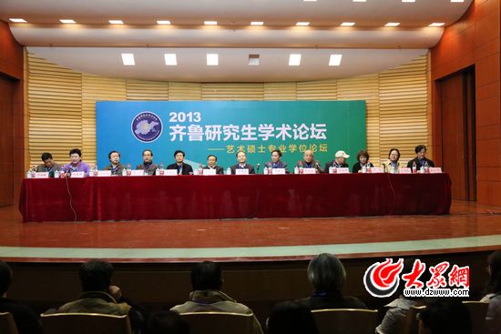 11月8日下午,由山东省人民政府学位委员会、山东省教育厅主办,山东艺术学院承办的2013年“齐鲁研究生学术论坛--艺术硕士专业学位论坛”在山东艺术学院开幕,论坛将举行三个领域的学术讲座,同时,艺术设计学作品展览、美术作品展览、音乐类舞台表演展演也将上演。
