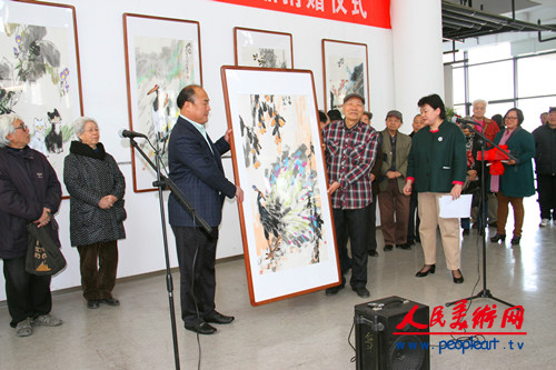 仪式上,高启光副院长受张志民院长嘱托致开幕辞。高启光副院长首先向齐辛民先生心系母校、支持学校发展的精神致以崇高敬意。他说,齐辛民先生是山东艺术学院艺专时期的老校友。艺专时期是学校历史上具有重要意义的一个阶段,揭开了学校发展的崭新一页。“艺术家从这里起步。”山东艺术学院作为培养艺术界有生力量的重要平台,对于齐辛民等莘莘学子更具有重要意义。55年来,当年风华正茂的学子们,在各自的领域取得了令人瞩目的成绩,为母校争了光。2011年我们举办了“霜重叶红——山东艺术学院艺专时期师生美术作品展”,取得良好效果。那时,齐辛民先生就踊跃参与,为画展作出积极贡献。高启光副院长指出,齐辛民先生是当代中国画坛具有重要影响的花鸟画家,取得令人瞩目的成就。党的十七届六中全会吹响了推动社会主义文化大发展大繁、建设中国特色文化强国的进军号。作为画家,生活在这样一个时代和社会是幸运的,要有感恩意识,感谢这个时代、感谢这个社会,奉献社会、服务时代。去年,单应桂先生、张彦青先生的家属、梁敬泗先生等一批老艺术家向学校捐赠了作品;今天,齐辛民先生将自己创作精品捐赠给学校,这给我们树立了榜样。他表示,学校也会将这些作品保护好、研究好、利用好