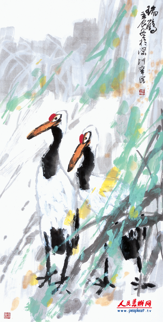 捐赠作品 《瑞鹤》136cm×68cm
