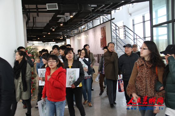 齐辛民陪同嘉宾参观画展