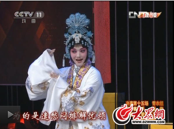 9月29日晚,由中共中央宣传部、国家文化部、国家广电总局等主管部门批准,中央电视台、中国戏剧家协会等单位联合主办的国内京剧大型赛事--“中央电视台全国青年京剧演员电视大赛”(以下简称青京赛)颁奖晚会在中央电视台演播大厅举行,山艺青年教师张倩荣获银奖(青衣组)和全国唯一一个“央视网”最具网络人气大奖。