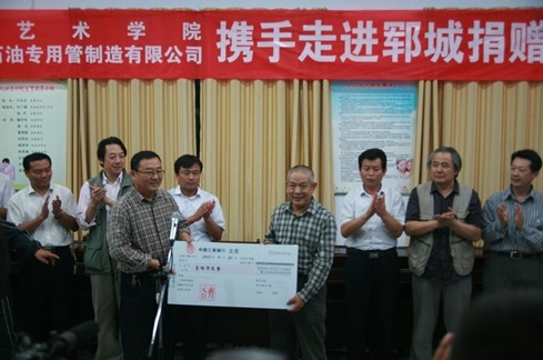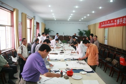 9月20日下午,山东艺术学院走进郓城书画笔会暨捐赠义卖仪式在菏泽郓城黄集乡举行。山东艺术学院院长、山东省美术家协会主席张志民率领山东艺术学院刘玉泉、韩菊声、李济民、马麟春、王兴堂、侯弟坤、党震、郭兴旺等著名教授、画家出席笔会,山东嘉隆石油专用管制造有限公司董事长齐元臣、郓城县和黄集乡党政负责人、山东艺术学院党办院办和组织部负责人以及3位驻村“第一书记”参加笔会。
