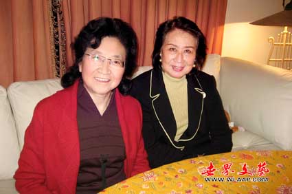 中国国际文艺家协会音乐家分会常务主席、山东艺术学院硕士研究生导师李晰教授(左)和美国中华妇女联合会会长、中国侨联海外委员何孔华女士