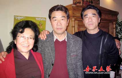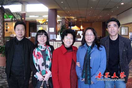 中国国际文艺家协会音乐家分会常务主席、山东艺术学院硕士研究生导师李晰教授(左一)和美国华人音乐家协会会长、加州青年国乐团团长田永平先生(中)及美国华人音乐家协会副会长、加州青年国乐团副团长于璋先生(右一)