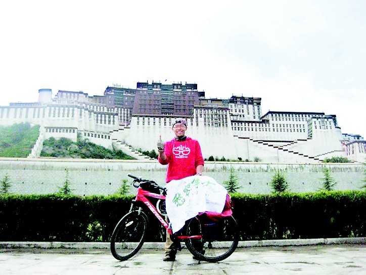 21岁的陈坤,是山东艺术学院的一名大一学生。说起自己的骑行经历,他一扫先前的腼腆,开口便滔滔不绝,几乎让记者插不上话。三年前,陈坤购买了一本中国地图册,在紧张的学习之余,他用圆珠笔在一座座自己“中意”的城市上勾勾点点,其中就有拉萨。“我"圈定"了不少地方,最后发现只有骑游拉萨还算靠谱。”从那时候开始,骑车到拉萨的梦想便在他的脑海中萌发。