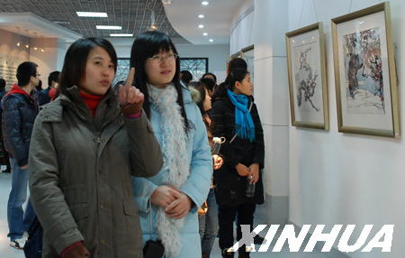 山东艺术学院学生在于希宁绘画艺术纪念馆里参观