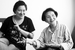 周小燕和爱徒于冠群昨在瑞金医院 金昊 摄