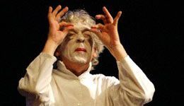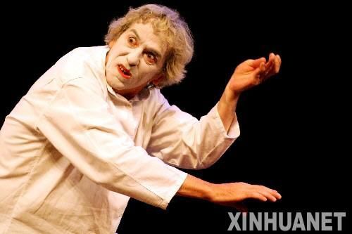 当晚,法国默剧大师菲利普·比佐在山东艺术学院大剧场表演其代表作、2007年智利国际默剧节获奖作品《三十年之静》。新华社发(陈长礼摄)