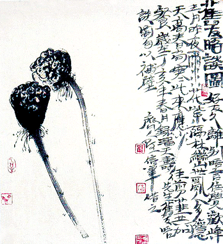 阿一尚直觉,运笔如风,如痴如狂,形象皆在情感激扬中显现,其心灵幻象乎?山水人物乎?实胸中之郁气而已。