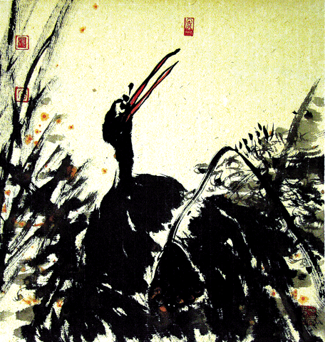 张宜的花鸟画追求浑厚多姿、生动洒脱,有强烈的视觉感,出奇制胜。他在构图中轻重虚实、疏密聚散,大胆的留白创新处理得恰到好处,极具艺术的感悟力。
