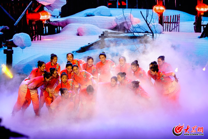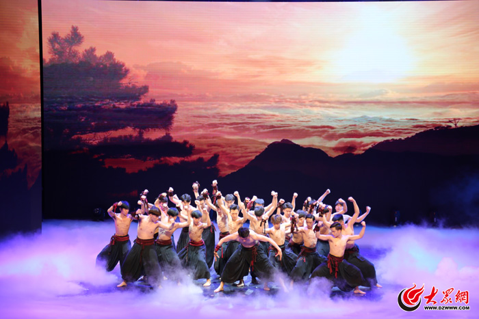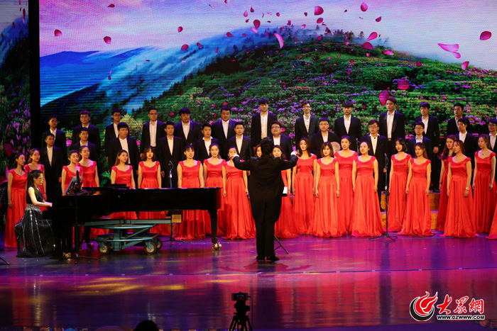 随后,大家共同观看了精彩的文艺演出。女子群舞《喜饽饽》用肢体语言把胶东地区人民热爱生活、幸福祥和的场面呈现在观众面前。随后,诗歌朗诵、合唱、京剧、音乐剧、弦乐合奏、二重唱、独唱、萨克斯合奏、舞蹈等节目精彩纷呈,博得观众一阵阵喝彩。青年合唱团带来了《come to the music》和《雪域向往》,用丰富多彩的调性转换和动力充沛的节奏编配演绎了现代音乐教科书式的精彩。荣获第十九届齐越朗诵艺术节优秀作品奖的散文诗朗诵《野草题辞》,激起了观众的时代激情。音乐剧《名扬四海》带领观众穿越回了青春洋溢的学生时代,回到了开学的那一天。青年弦乐团在全国第五届大学生艺术展演活动中荣获艺术表演类一等奖的好成绩,现场演奏的《霍尔堡组曲》让观众领略了山艺学子的精彩。男女二重唱《邀你一起去看桃花》,让观众为学生扎实的基本功喝彩。传统武戏《三岔口》片段在没有道白和唱腔的情况下,靠演员惟妙惟肖的表演,把剧情演释得淋漓尽致。王文清、张倩演唱的京歌《中国脊梁》让观众流连忘返。国家艺术基金资助项目《再唱沂蒙山》,用歌声颂扬沂蒙精神、红色基因,传递山东大地的文化讯息和齐鲁儿女的勤劳勇敢。青年萨克斯乐团带来的《民族节庆》和《婚礼舞曲》,用萨克斯细腻委婉、浑厚圆润的音色给晚会增添了浓重的节日气氛。晚会在曾荣获第九届中国舞蹈荷花奖校园舞蹈评奖作品“金奖”的男子群舞《脊梁》落下帷幕。