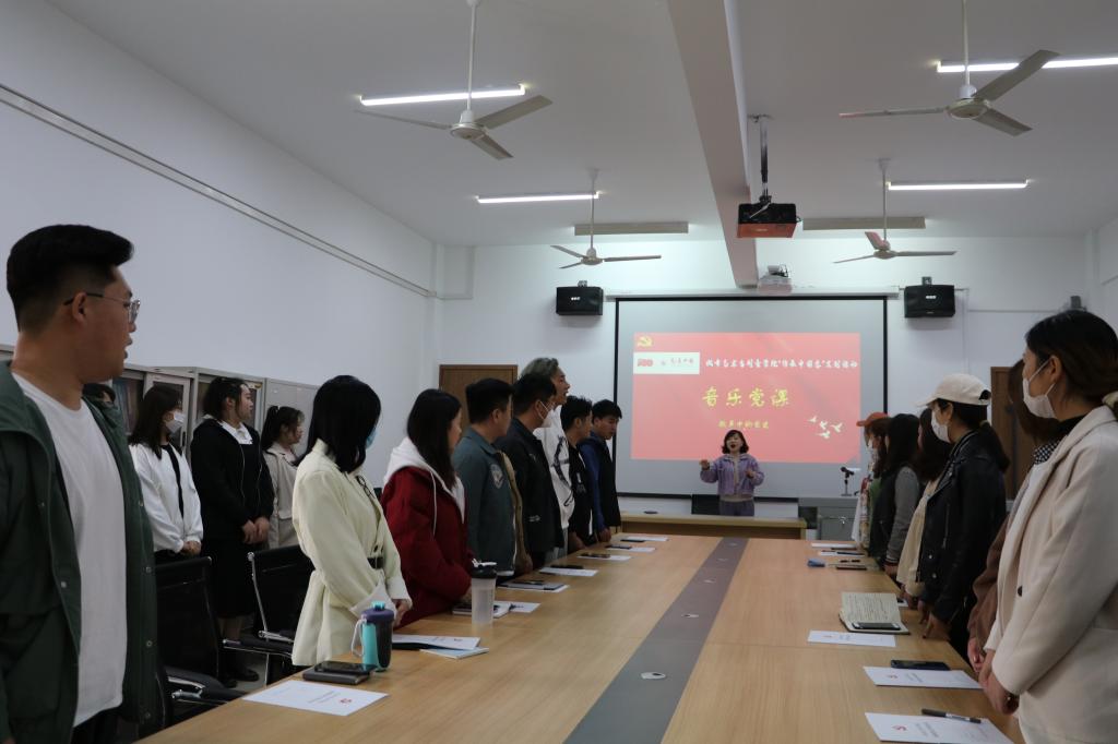 党总支副书记董莉表示,为了讲好这次党课,请教了党史专家,对百年党史的脉络进行了梳理。重温那些经典歌曲,鼓舞士气,振奋精神,凝聚力量,传承红色基因。2018级学生灵犀表示,党课上我们齐唱国歌和红色歌曲,深刻体会到无数革命前辈用鲜血换来的新时代的美好与安宁,我们应该倍加珍惜现在的美好生活,充实自己,为建设祖国贡献力量!2019级学生宋学达谈到,这次党课将音乐与党史相结合,通过曲目导赏、史实解说、在老师带领下现场高歌、听歌问答等方式,生动展示了中国共产党带领全国各族人民从峥嵘岁月走向新时代的壮阔画卷,点燃了我们的热情,也使大家受到极大的震撼与鼓舞,让我们在音乐中以史铭志,不忘初心。