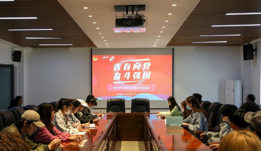 4月16日,由共青团山东省委、山东省委讲师团主办的“青春向党·奋斗强国”党史学习教育山东首场示范宣讲在山东大学举行。我校学生会、研究生会学生干部及部分学生代表通过视频方式与现场观众共上一堂课、一起学党史。