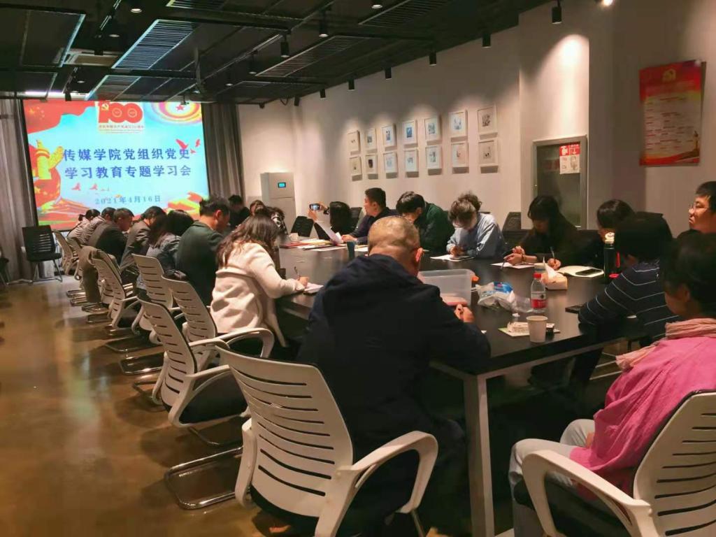 4月16日,传媒学院党总支召开党史学习教育专题学习会。全体党员参加会议。