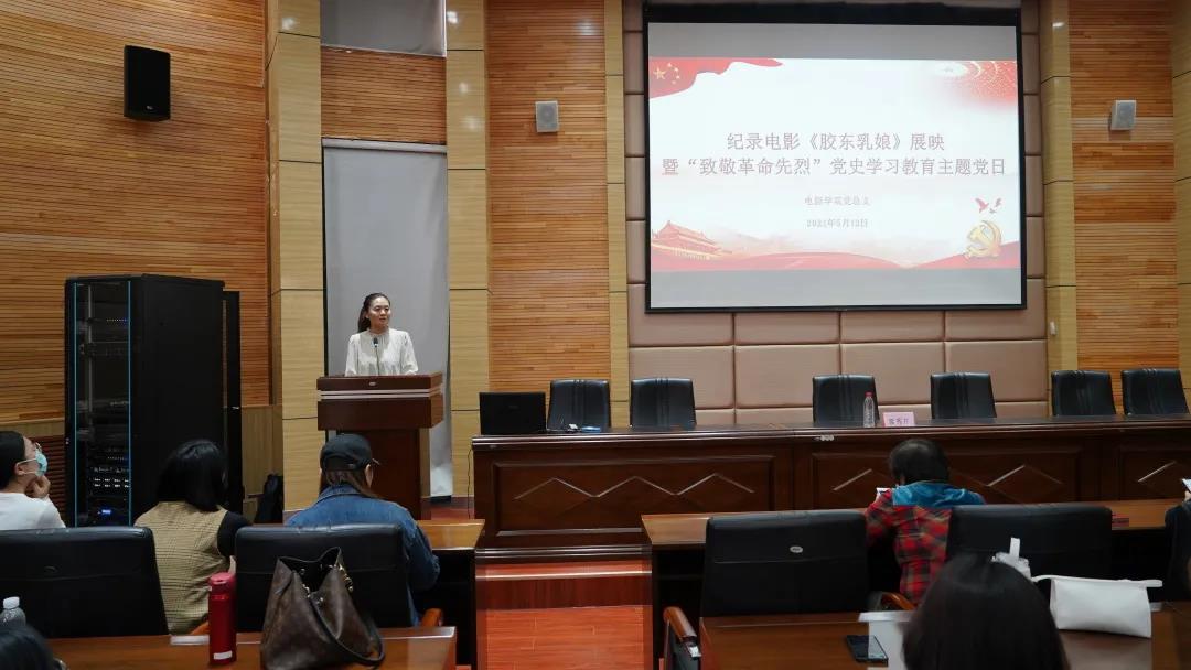 5月12日,电影学院在长清校区二楼报告厅举行庆祝中国共产党成立100周年系列活动——纪录电影《胶东乳娘》展映暨“致敬革命先烈”党史学习教育主题党日活动。电影学院党政负责人、师生党员、学生代表等100余人参加活动。