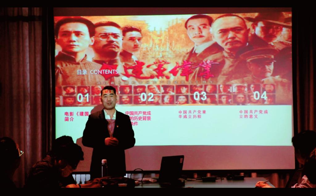 党课由传媒学院教师二支部书记刘强主讲。他以《建党伟业》这部献礼影片为切入点,以视频、图片与ppt课件相结合的方式,深入浅出又生动形象地讲解了中国共产党成立的历史背景、过程及意义,指出中国共产党的成立,是历史的必然选择,是人民的选择。