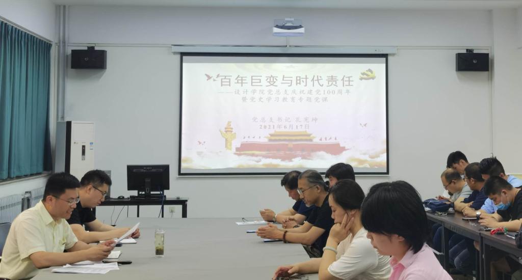 6月17日,设计学院党总支书记孔宪坤为全体教师党员讲授“百年巨变与时代责任”党史学习教育专题党课。