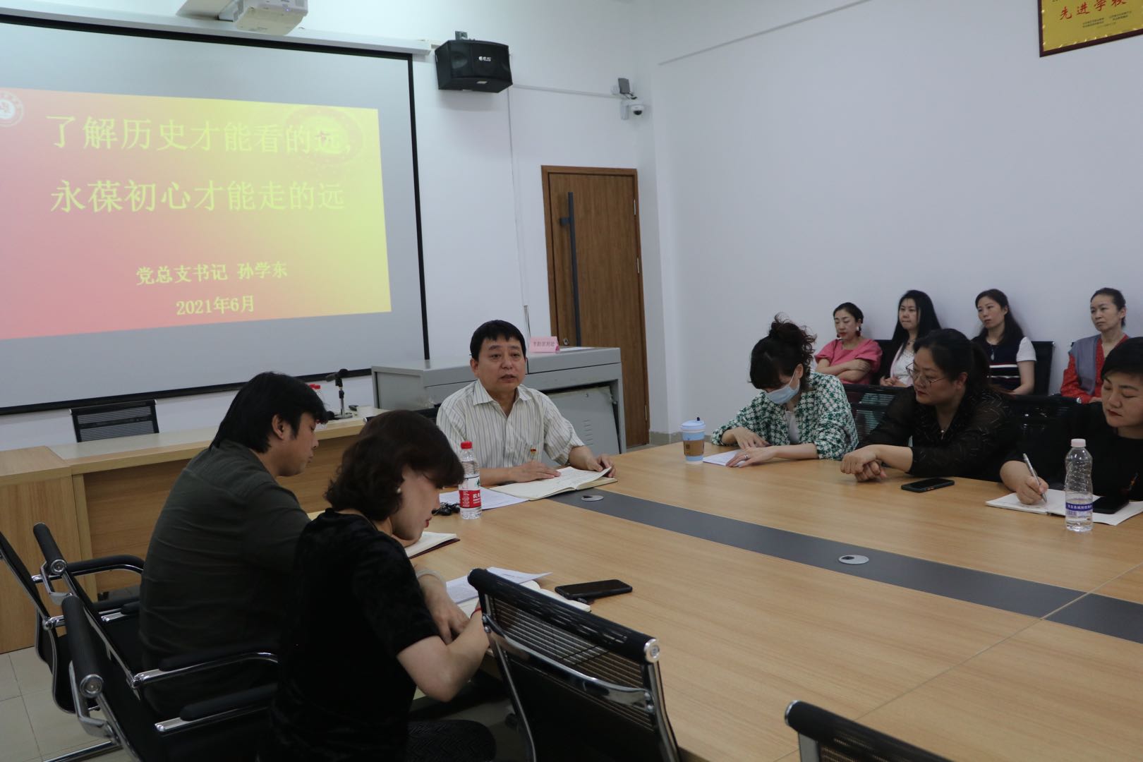 6月17日,职业教育学院党总支书记孙学东为本学院师生党员讲授“了解历史才能看得远,永葆初心才能走得远”的党史学习教育专题党课。