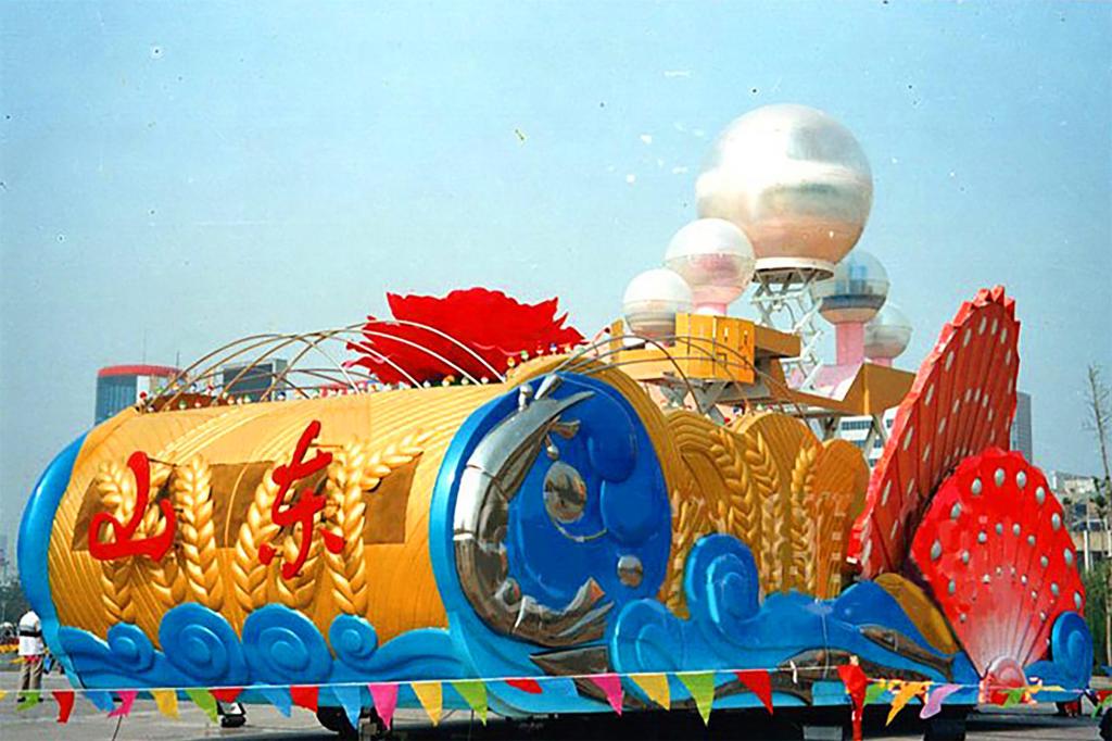 在庆祝新中国成立70周年庆典活动中,由山东艺术学院承担设计、主要制作、彩饰和展演的山东彩车“国泰民安”,在首都北京天安门广场隆重登场,承载着山东人民对祖国美好的祝福,展现齐风鲁韵的气势磅礴,也凝聚着山艺人的智慧和心血。这是山东艺术学院继1999年设计国庆50周年山东彩车“海上明珠”、2009年设计国庆60周年山东彩车“岱青海蓝”之后,又一次光荣承担国庆山东彩车的设计制作工作。山东彩车“国泰民安”荣获地方彩车“匠心奖”,学校被省委省政府表彰授予“突出贡献单位”。参与设计展演的师生身负重任,满怀自豪和骄傲,在精诚合作一遍遍修改优化设计方案,反复精准排练展演中,以至臻的艺术形式,臻美的艺术表现,创造了象征国家强盛、人民安康,代表山东人民真挚祝福的山东彩车。彩车荣归山艺,作为校园文化的地标建筑物,成为对师生进行爱国主义教育和艺术实践教学的示范,生动鲜活地教育影响着山艺师生,传承一代代山艺人心系党和祖国,为人民而创作的艺术精神。
