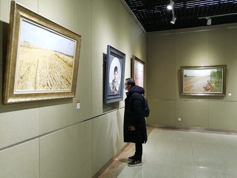 观众参观“黄河入海——黄河滩区主题美术作品展”。孙丛丛 摄