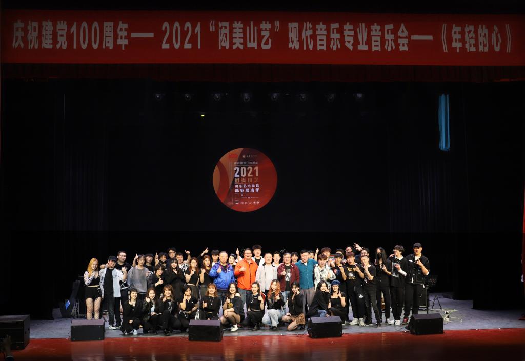 5月9日,庆祝建党100周年——2021“闳美山艺”山东艺术学院毕业展演季系列活动现代音乐专业音乐会《年轻的心》在文东校区艺术剧场三楼大剧场举行。学校相关单位负责人、师生代表及社会各界观众500多人观看演出。本次演出通过雅昌艺术网艺术头条客户端线上直播全网发布,线上线下同时进行。