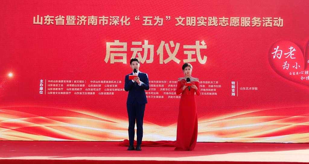 据悉,此次“五为”文明实践志愿服务活动由省委宣传部(省文明办)等单位主办,济南市委宣传部(市文明办)等单位承办。启动仪式在济南市设主会场,省内其他15市设活动分会场,同步开展活动。主会场活动通过央视网、新华网、百度、今日头条、闪电新闻、海看新闻、新黄河、舜网、爱济南、天下泉城、济南发布等媒体进行了实时直播报道。