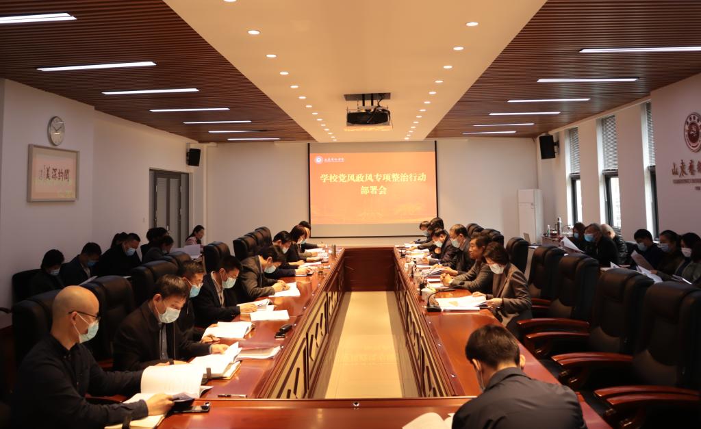 王洪禹就做好学校党风政风专项整治行动,提出三点要求。一是提高站位,充分认识专项整治行动重要意义。当前学校正处于博士学位授予单位申建的关键阶段,开展党风政风专项整治行动是深入贯彻全面从严治党战略方针的需要,是推进学校治理体系与治理能力现代化的需要,是推进学校事业高质量发展的需要,全体党员干部和广大教职员工要充分认识开展专项整治行动的重要性和紧迫性,切实增强责任感、使命感,积极参与专项整治行动,为学校高质量发展提供良好的学术生态和坚强作风保障。二是强化落实,全力推进专项整治行动取得实效。学校根据省委教育工委、省教育厅工作要求,成立了专项整治工作领导小组,制定了专项行动的实施方案,明确了专项整治的范围、内容、措施和步骤。各单位、各部门要对照专项整治方案,压实各方面整改责任,确保责任到岗到人,问题整改落实到位。要坚持“当下改”与“长久治”相结合,标本兼治,进一步建章立制,健全完善长效制度机制。三是统筹结合,协调推进抓好学校各项重点工作。要把专项整治行动与博士学位授予单位申建和学科建设工作、应用型本科高校建设、首轮岗聘考核和第二轮岗聘工作、机关部门年终考核改革、文艺精品创作、服务国家和山东省重大战略等工作结合起来,进一步加大工作力度,推进工作落实,通过党风政风专项整治行动,推进学校事业发展取得新收获新突破。