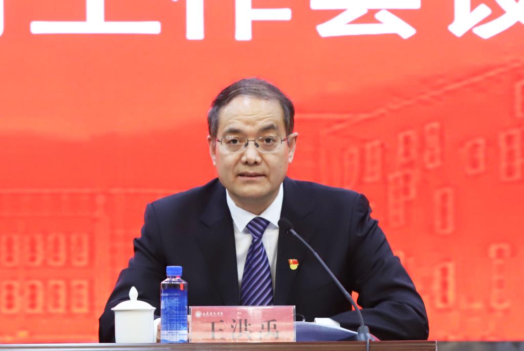 王洪禹指出,在全党深入开展学习贯彻习近平新时代中国特色社会主义思想主题教育,是党中央为全面贯彻党的二十大精神、动员全党同志为完成党的中心任务而团结奋斗作出的重大部署,是深入推进新时代党的建设新的伟大工程的重大部署,对于统一全党思想、解决党内存在的突出问题、始终保持党同人民群众血肉联系、推动党和国家事业发展,具有重要意义。学校要从三个方面谋划好、组织好、落实好主题教育:一是提高政治站位,深刻认识开展主题教育的重大意义。开展主题教育,是统一思想意志行动、始终保持党的强大凝聚力、战斗力的必然要求,是推动积极担当作为、不断开创事业发展新局面的必然要求,是深入推进全面从严治党、以党的自我革命引领社会革命的必然要求。二是全面准确把握目标要求,高质量开展好主题教育。要牢牢把握“学思想、强党性、重实践、建新功”总要求,锚定“凝心铸魂筑牢根本”“锤炼品格强化忠诚”“实干担当促进发展”“践行宗旨为民造福”“廉洁奉公树立新风”目标任务,全面落实好重点措施,要坚持凝心铸魂、强化理论学习,要坚持求真务实、大兴调查研究,要坚持学用结合、着力推动发展,要坚持刀刃向内、抓好检视整改,要坚持常态长效、推动建章立制。三是加强组织领导,为开展主题教育提供有力保证。要压紧压实责任,强化督促考核,注重统筹兼顾,加强宣传引导。
