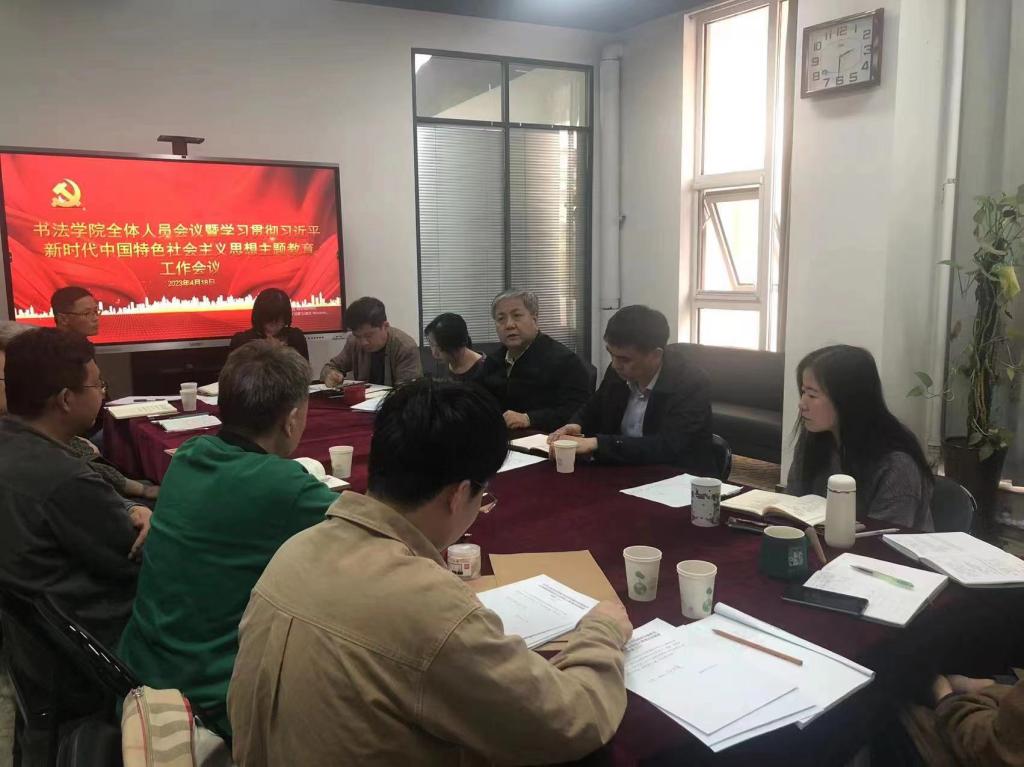 4月18日下午,书法学院在长清校区书法学院党团活动室召开学习贯彻习近平新时代中国特色社会主义思想主题教育工作会议,学院全体教职工参加会议。