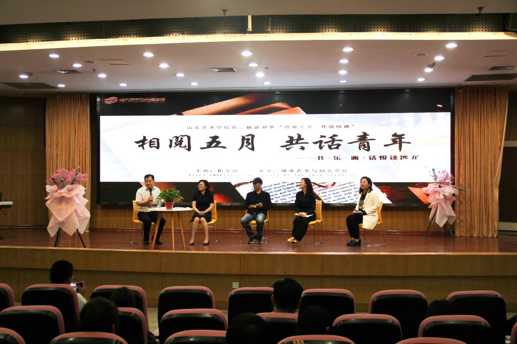 5月26日,我校第二届读书节“博雅学堂共读经典”之相阅五月▪共话青年悦读沙龙在长清校区图书馆报告厅举行。本次活动由图书馆主办、城市艺术与创意学院承办,邀请美术学院孟宪平副教授、艺术管理学院余兆欣教授、传媒学院宋法刚教授、城市艺术与创意学院唐玮副教授、公共课教学部孙晓娜副教授五位老师担任主讲嘉宾。各二级学院师生代表参加活动。
